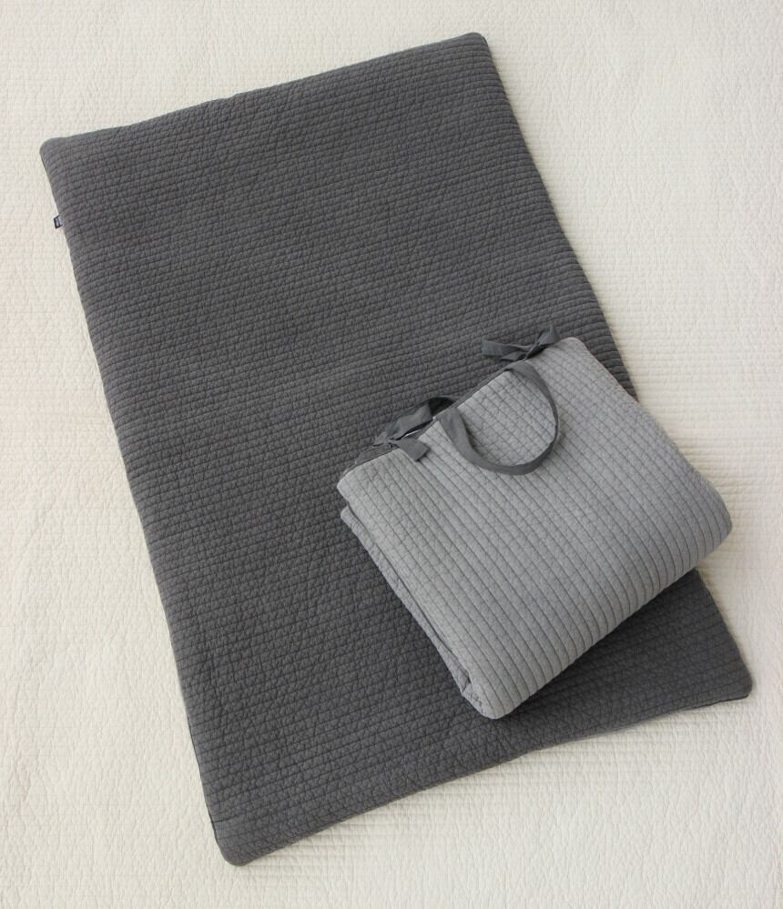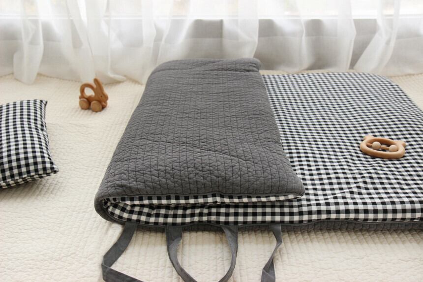 敷布団、掛け布団、枕をコンパクトに持ち運びできる、お昼寝布団セットにもなります。(*こちらの商品は敷きパッドのみ)