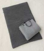端はパイピング加工で型崩れしにくく、しっかりと丈夫です。サイドのひもをしばってカバン型に。持ち運びも楽々です。