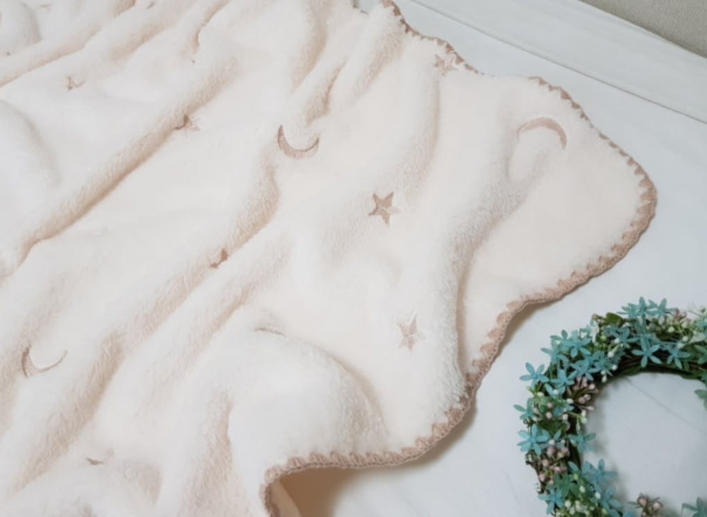柔らかく肌触りのよいマイクロファイバー100%のブランケット。お昼寝布団とお色を合わせてお使いいただけます。