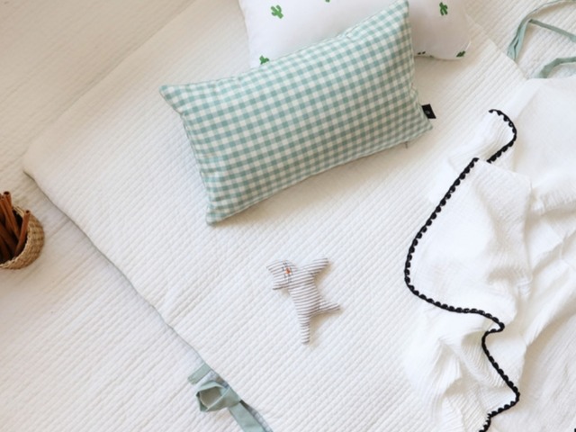 カバー式でお洗濯ができます。中綿は柔らかいマイクロファイバー。お布団と同じチェック柄のカバーになります。