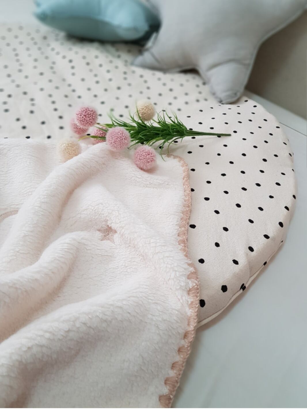 丸型で可愛い、赤ちゃんにも安心のラグマットです!インテリアのポイントにも♡