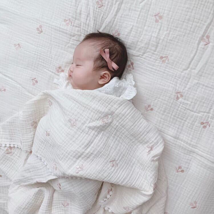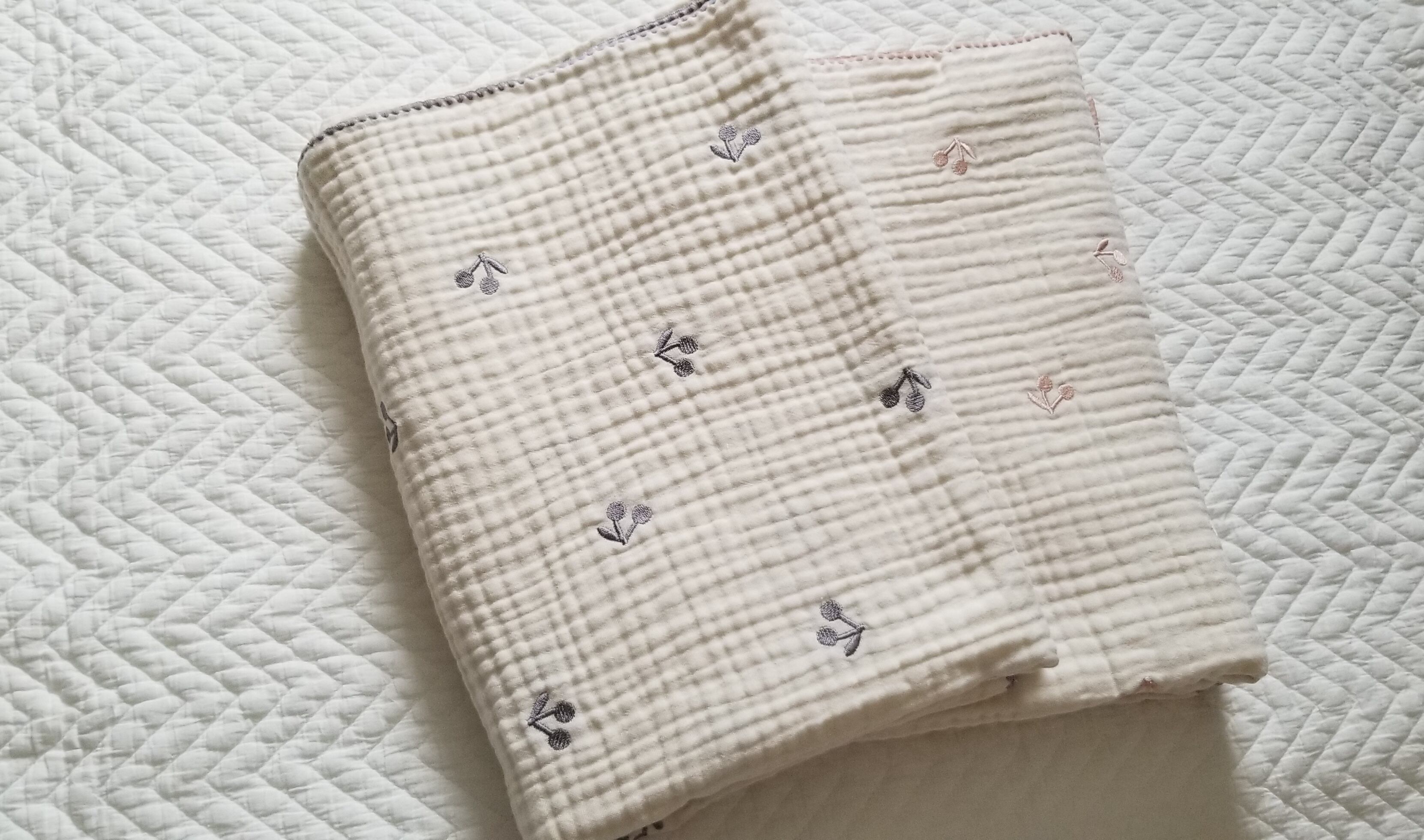 130×90cmの大判サイズなのでブランケットとしてはもちろん、おくるみやベビーカーにもご使用いただけます。