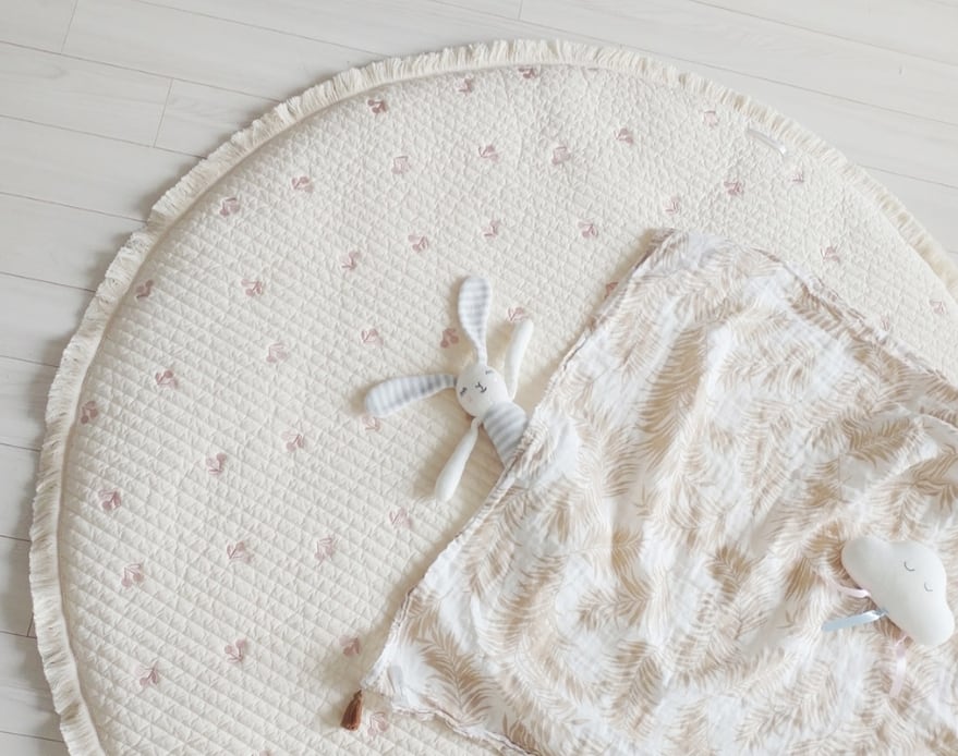 丸型で可愛い、赤ちゃんにも安心のラグマットです!インテリアのポイントにも。