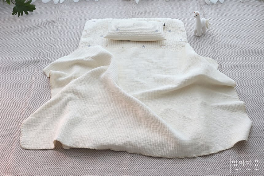 韓国国内の布団ブランドの工場生産で安心のお品です。天然の染料を使い、赤ちゃんにも優しいお品です。ピグメントウォッシュ加工といって、高温で何度もゆでて蒸すを繰り返し、不純物を取り除いています。ご家庭で洗濯後も収縮が少なく、シワも少ないのが特徴です。