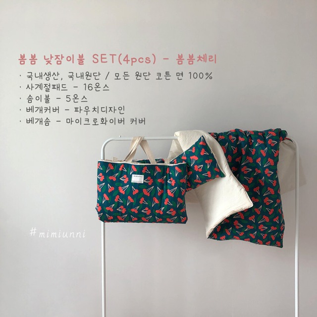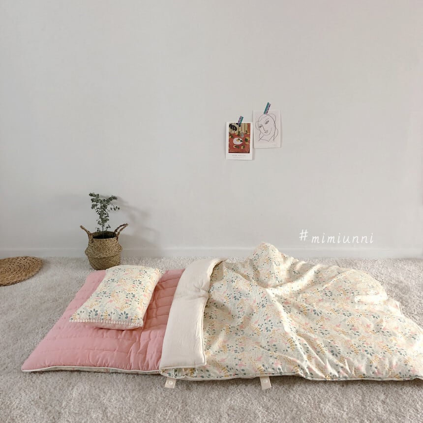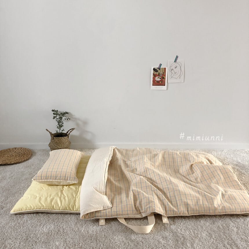 敷布団、掛け布団、枕をコンパクトに持ち運びできる、お昼寝布団セットです。